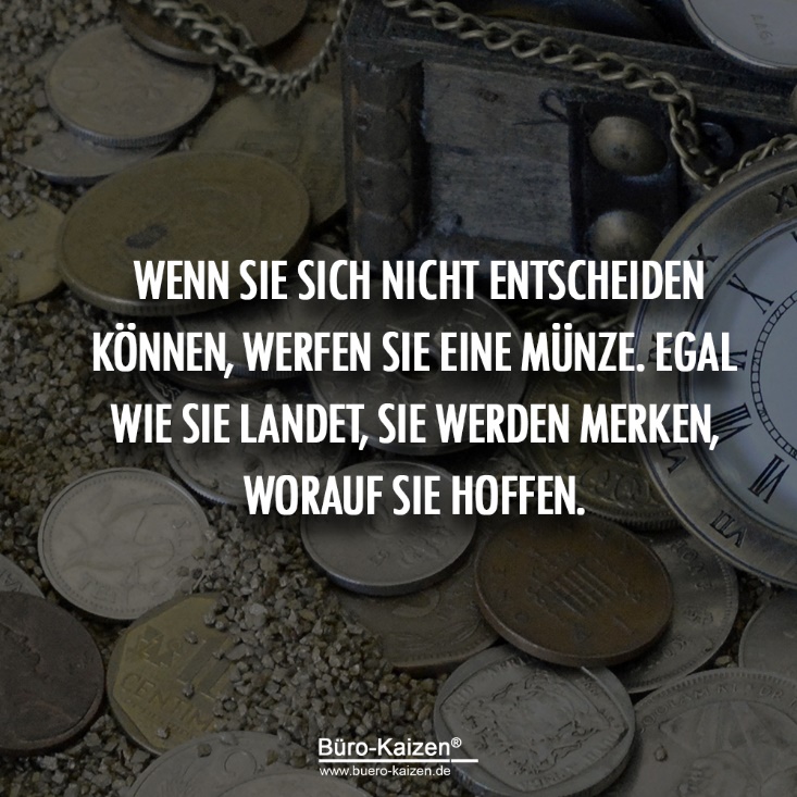Wenn Sie sich nicht entscheiden können, werlfen Sie eine Münze. Egal wie sie landet, Sie werden merken, worauf Sie hoffen.