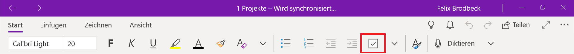 Abbildung I: Die Schaltfläche zum Erstellen von Checklisten in OneNote, Microsoft, Büro Kaizen [Zum Vergrößern anklicken]