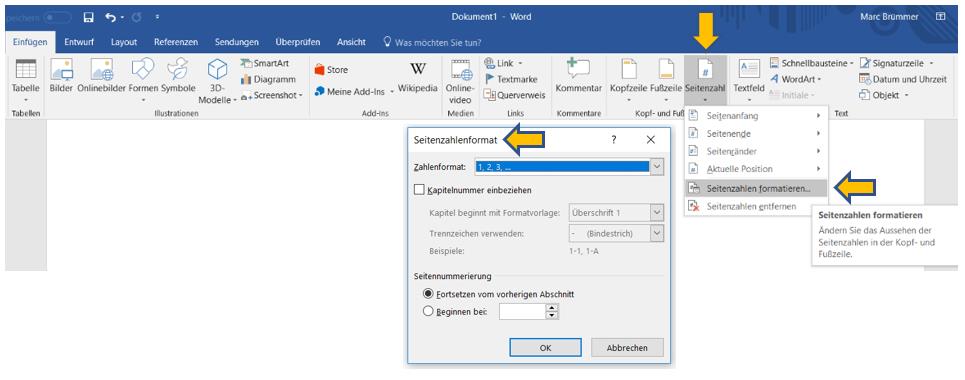 Seitenzahlen in Word benutzerdefiniert formatieren