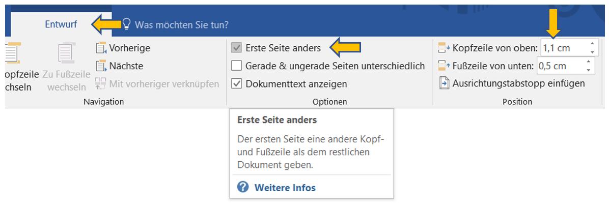 Seitenzahlen in Word erst später ab Seite 2 beginnen