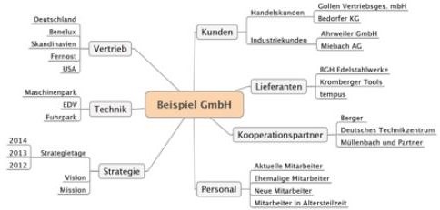 So könnte ein Mindmap für die Unternehmensstrategie aussehen.