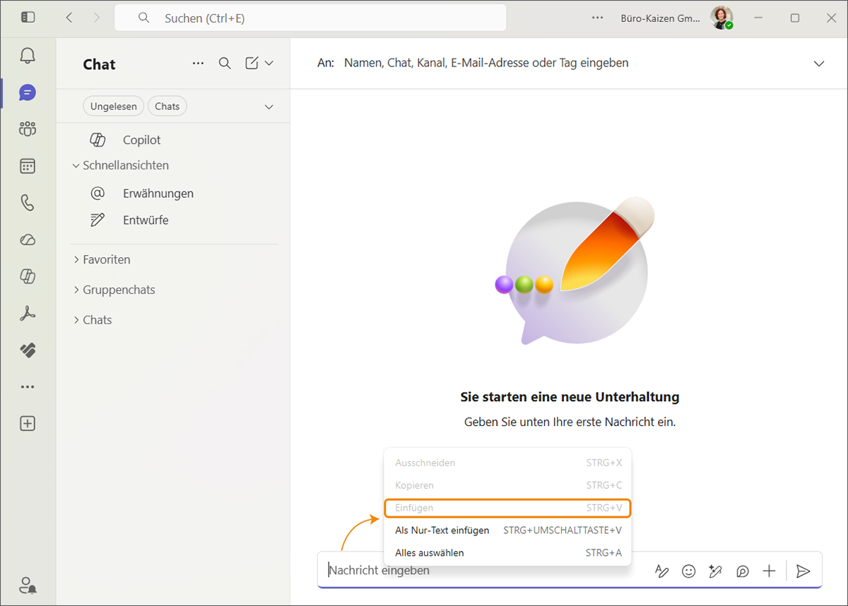 In Microsoft Teams ist das Einfügen von Inhalten per Rechtsklick nicht möglich, da die Option „Einfügen“ im Kontextmenü ausgegraut ist. Betroffen sind vor allem Links, formatierter Text und Bilder – und damit genau die Inhalte, die man im Chat am häufigsten schnell teilen will.