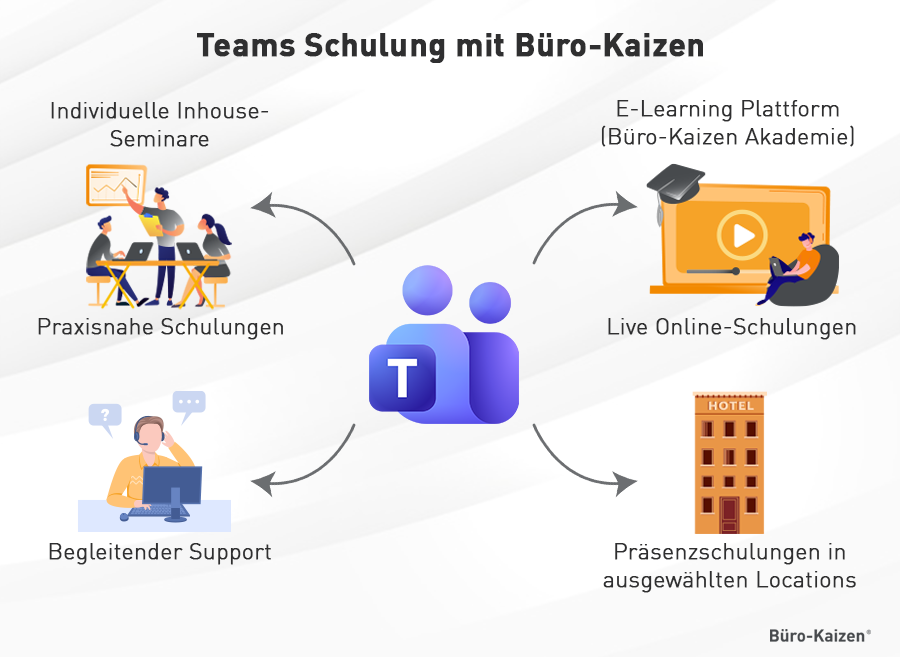 Teams-Schulungen von Büro-Kaizen®: Preisgekrönter Schulungsanbieter mit zahlreichen Awards & AuszeichnungenDie Büro-Kaizen® GmbH ist ein erfahrener Schulungsanbieter mit vielfach prämierten Beratungskonzepten für die digitale Transformation und mehr Effizienz in Unternehmen. Unsere innovativen Methoden wurden bereits mit zahlreichen Awards ausgezeichnet (darunter dem Brand eins Award für Unternehmensberatungen, DeutscherIdeenpreis, Best Practice Award, Internationaler Deutscher Trainingspreis, International Best Service Award, BestPersAward, Top-Consultant für den Mittelstand, Ludwig-Erhard-Preis-Wettbewerb u.v.a.m.).