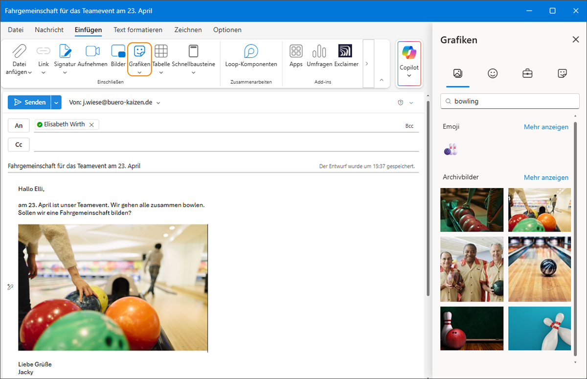 So fügen Sie im neuen Outlook die kreativen Elemente ein