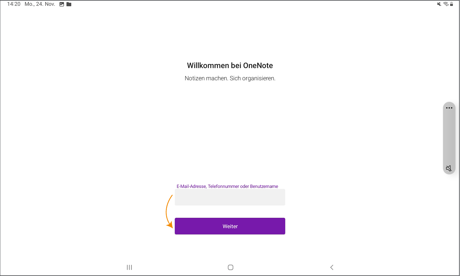 2. Auf dem Android-Gerät in OneNote anmelden