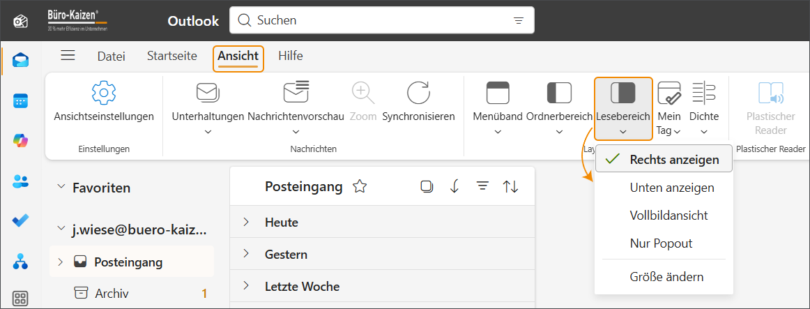 1. Methoden: Wie Sie bequem die Outlook Ansicht vergrößern