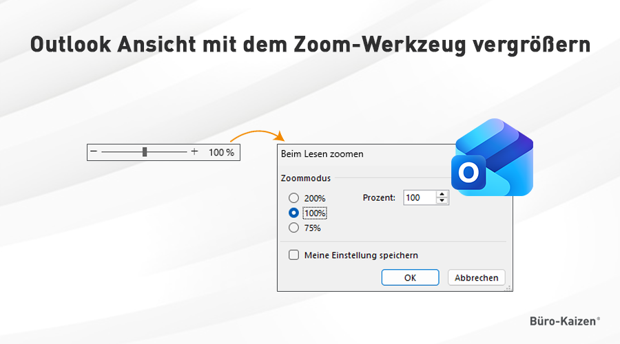 1.1 Die Outlook Ansicht vergrößern per Zoom und die Einstellung dauerhaft speichern