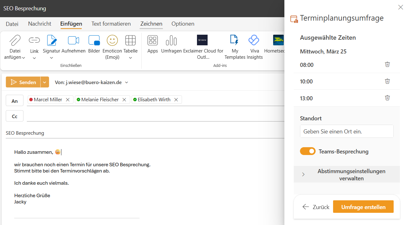 Zusammenfassung – Terminvorschläge mit Outlook und Doodle